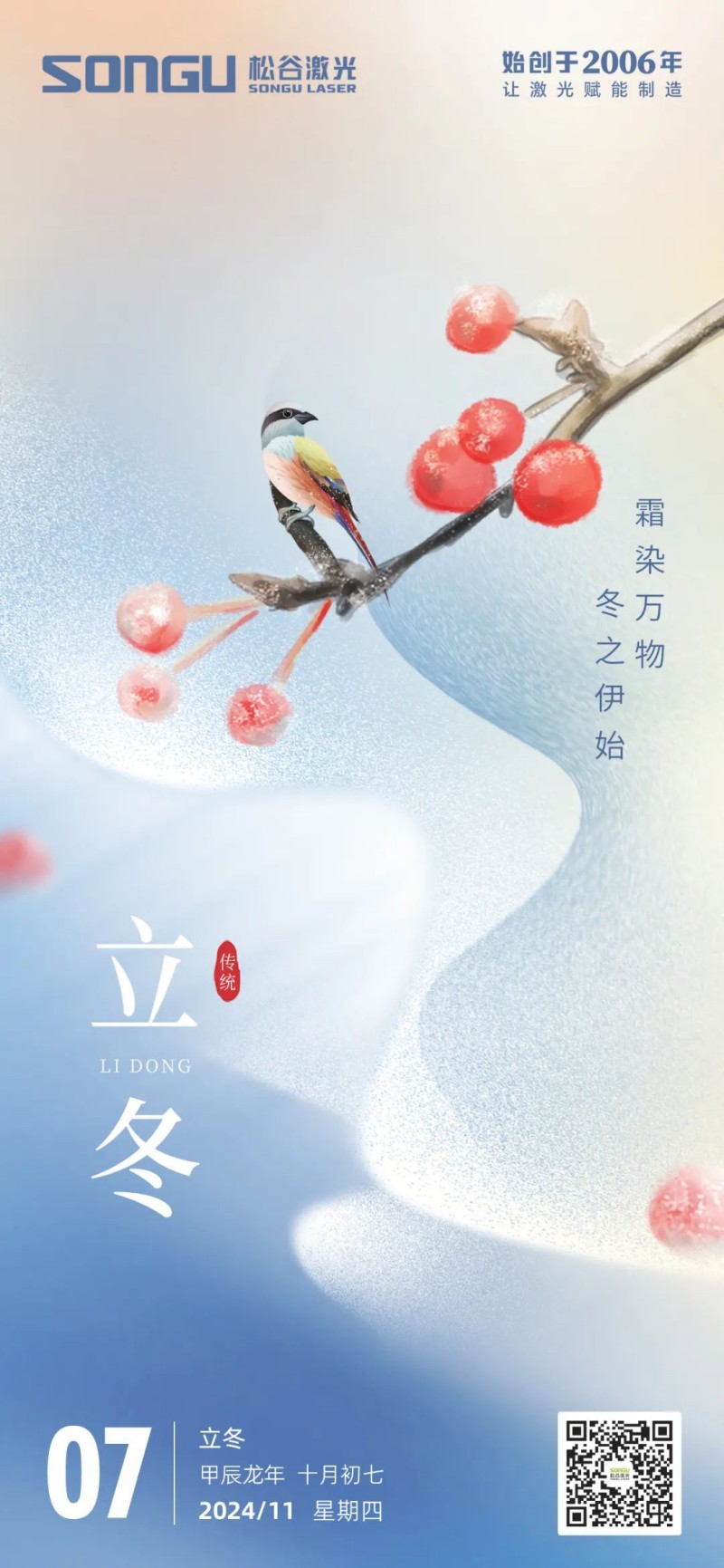 冬至已至,寒梅待放,松谷激光科技在這個寓意著團圓與希望的節氣里,向每一位合作伙伴、客戶及全體員工致以最溫暖的祝福: